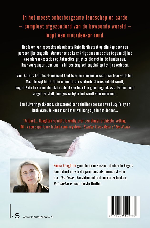 Het leven van spoedeisendehulparts Kate North staat op zijn kop door een persoonlijke tragedie. Wanneer ze de kans krijgt om aan de slag te gaan bij het VN-onderzoeksstation op Antarctica grijpt ze die zonder twijfel met beide handen aan. Op Antarctica zou niemand haar kennen – en niemand dus weten over haar tragische verleden. Eindelijk geen medelevende blikken en mensen die vragen hoe het met haar gaat. Maar terwijl het station in een totale winterduisternis gehuld wordt, begint Kate te vermoeden dat de dood van haar voorganger niet toevallig was. En hoe meer vragen ze stelt, hoe gevaarlijker het wordt voor iedereen… Een huiveringwekkende, claustrofobische thriller met sterke personages en een geweldige setting.