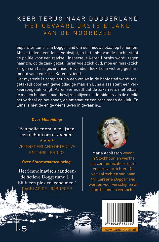 Superster Luna is op Doggerland om een nieuwe plaat op te nemen. Als zij in het holst van de nacht verdwijnt, staat de politie voor een raadsel. Inspecteur Karen Hornby wordt, tegen haar zin, op de zaak gezet. Karen voelt zich oud en moe, en maakt zich zorgen om haar gezondheid. Bovendien leek Luna wel érg gecharmeerd van Leo Friss, Karens vriend.