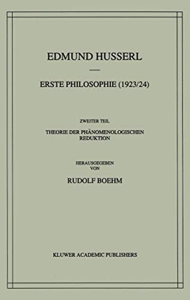 Zweiter Teil Theorie der Phänomenologischen Reduktion.- Erster Abschnitt: Vormeditationen über den apodiktischen Anfang der Philosophie.- Erstes Kapitel: Einleitung: Die Motivation des anfangenden Philosophen in der absoluten Situation.- 28. Vorlesung: Die Idee der Philosophie in der Geschichte und die Motivationslage des philosophierend anfangenden Subjekts.- 29. Vorlesung: Zur Stiftung der habituellen Lebensform des werdenden Philosophen.- 30. Vorlesung: Reine Kulturgesinnung überhaupt und die Urstiftung eines philosophischen Radikalismus.- Zweites Kapitel: Die Idee der apodiktischen Evidenz und die Problematik des Anfangs.- 31. Vorlesung: Natürliche und transzendentale, apodiktische und adäquate Evidenz.- 32. Vorlesung: Die möglichen Ausgangspunkte: „Ich bin“ — und „Ich als anfangender Philosoph“; „Ich bin“ — „Diese Welt ist“.- Zweiter Abschnitt: Kritik der mundanen Erfahrung. Erster Weg zur transzendentalen Reduktion.- Erstes Kapitel: Weltwahrnehmung und Weltglaube.- 33. Vorlesung: Die unaufhebbare Kontingenz des Satzes: „Die Welt ist“.- 34. Vorlesung: Transzendentaler und empirischer Schein. Zum „Einwand der Verrücktheit“.- Zweites Kapitel: Ergänzungen und Klärungen im Anschluß an den „Einwand der Verrücktheit“.- 35. Vorlesung: Zur Lehre von der „Einfühlung“.- 36. Vorlesung: Der transzendentale Solipsismus. Das negative Ergebnis der Kritik der mundanen Erfahrung.- Drittes Kapitel: Eröffnung eines Feldes transzendentaler Erfahrung. Transzendentale, phänomenologische und apodiktische Reduktion.- 37. Vorlesung: Die apodiktische Gewißheit der möglichen Nichtexistenz der Welt und die Abhebung des transzendentalen Lebens der Subjektivität.- 38. Vorlesung: Das Feld der transzendentalen Erfahrung als Thema einer transzendentalen Kritik.- Dritter Abschnitt: Zur Phänomenologie der phänomenologischen Reduktion. Eröffnung eines zweiten Weges zur transzendentalen Reduktion.- Erstes Kapitel: Die transzendentale Zeitform des transzendentalen Lebensstromes der Subjektivität.- 39. Vorlesung: Der volle Gehalt der universalen transzendentalen Selbsterfahrung: transzendentale Gegenwart, Vergangenheit und Zukunft.- 40. Vorlesung: Reflexion als Ichspaltung und die Identität des Ich in strömend lebendiger Gegenwart.- Zweites Kapitel: Zur Theorie der theoretischen Einstellung des Phänomenologen: Sinn und Leistung der ?????.- 41. Vorlesung: Reflexion und theoretisches Interesse, Ichspaltung der Stellungnahmen.- 42. Vorlesung: Allgemeinster Begriff des Interesses, der „Einstellung“, des „Themas“.- 43. Vorlesung: Die Möglichkeit eines reinen Interesses am subjektiven Sein in phänomenologischer ????? und Reflexion.- Drittes Kapitel: Die Bewußtseinsaktivität des natürlichen Ichlebens und die Reduktion auf die reine Subjektivität.- 44. Vorlesung: Positiohale und quasi-positionale Akte und ihre Reduktion; ????? und quasi-?????.- 45. Vorlesung: Das natürliche Weltleben des Ich als Aktsubjekt und das Unnatürliche phänomenologisch reiner Selbstbesinnung. Zum Gedankengang.- 46. Vorlesung: Neugestaltung und Vertiefung der phänomenologischen Methode: der cartesianische und der Weg des Psychologen zur transzendentalen Reduktion.- Vierter Abschnitt: Phänomenologische Psychologie, transzendentale Phänomenologie und phänomenologische Philosophie.- Erstes Kapitel: Leistung und Problematik einer phänomenologisch-psychologischen Reduktion.- 47. Vorlesung: Intentionale Implikationen und Iterationen.- 48. Vorlesung: Das Problem des Übergangs von der psychologischen Reduktion jeweiliger Akte zur universalen phänomenologischen ????? und Reduktion.- Zweites Kapitel: Die Eröffnung des Reiches transzendentaler Erfahrung auf dem zweiten Wege.- 49. Vorlesung: Die Horizonte der lebendig strömenden Gegenwart.- 50. Vorlesung: Der endlose Zeitstrom des Lebens und die Möglichkeit einer universalen Reflexion und ?????.- 51. Vorlesung: Übergang zur universalen ????? und Reduktion. Das reine universale Leben und seine Erlebeniswelt.- Drittes Kapitel: Der philosophische Sinn der transzendentalen phänomenologischen Reduktion.- 52. Vorlesung: Philosophie als systematische Selbstentfaltung der transzendentalen Subjektivität in Form systematischer transzendentaler Sebsttheoretisierung auf dem Grunde der transzendentalen Selbsterfahrung.- 53. Vorlesung: Das Problem der Intersubjektivität.- a) Die Möglichkeit transzendentaler Naivität einer reinen Phänomenologie und die philosophische Aufgabe einer apodiktischen Kritik der transzendentalen Erfahrung.- b) Transzendentale Egologie („solipsistische Phänomenologie“) und der Übergang zur intersubjektiven Reduktion.- 54. Vorlesung: Der Weg der phänomenologischen Reduktion zum transzendentalen Idealismus und dessen phänomenologischer Sinn als transzendentale Monadologie.- Ergänzende Texte.- A. Abhandlungen.- Meditation über die Idee eines individuellen und Gemeinschaftslebens in absoluter Selbstverantwortung (1924).- Besinnung als Aktivität — Zur Phänomenologie der Besinnung über das Ziel einer Universalwissenschaft (1924).- Idee der vollen Ontologie (1924).- Weg in die transzendentale Phänomenologie als absolute und universale Ontologie durch die positiven Wissenschaften und die positive Erste Philosophie (1923).- Das Unzureichende der positiven Wissenschaften und die Erste Philosophie (1921).- Versuch zu einer Scheidung der Stadien auf dem Wege zu einer Wissenschaft von der transzendentalen Subjektivität (1925).- Der Weg durch die Kritik der positiven Wissenschaften zur transzendentalen Phänomenologie, der cartesianische Weg der Ideen und das Problem der vorgegebenen Lebenswelt (1925).- Der cartesianische und der Weg der universalen phänomenologischen Psychologie in die transzendentale Phänomenologie (1923).- B. Beilagen.- Beilage I: Inhaltsübersicht, zusammengestellt von Ludwig Landgrebe (1924).- Beilage II: Kritische Notizen Husserls zum Gedankengang, zusammengestellt vom Hrsg. (1924/25).-