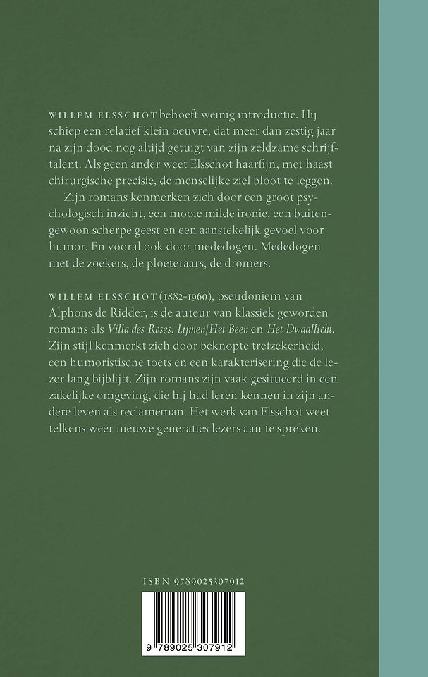 Willem Elsschot behoeft weinig introductie. Hij schiep een relatief klein oeuvre, dat meer dan zestig jaar na zijn dood nog altijd getuigt van zijn zeldzame schrijftalent. Als geen ander weet Elsschot haarfijn, met haast chirurgische precisie, de menselijke ziel bloot te leggen.