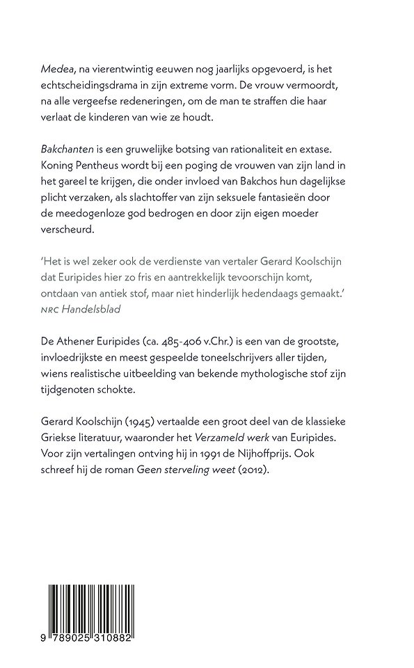 Medea, na vierentwintig eeuwen nog jaarlijks opgevoerd, is het echtscheidingsdrama in zijn extreme vorm. De vrouw vermoordt, na alle vergeefse redeneringen, om de man te straffen die haar verlaat, de kinderen van wie ze houdt.
