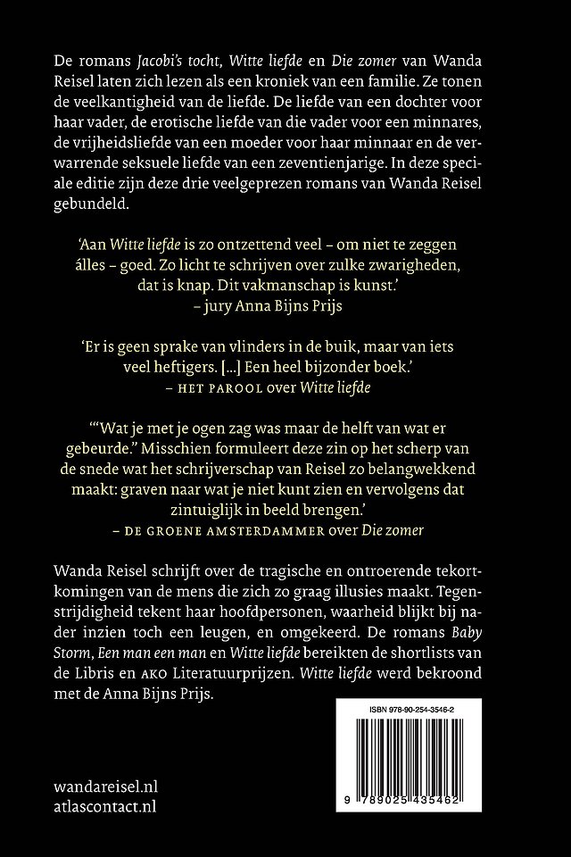 In Jacobi's tocht, Witte liefde en Die zomer laat Wanda Reisel het beeld van haar familie telkens kantelen. De dochter richt haar blik op haar vader, op haar moeder en op zichzelf. Alle drie gaan buiten de gebaande paden. Alle drie gaan vreemd. Alle drie gaan op zoek naar nieuwe horizonten. Een verborgen wereld. Gebundeld vormen deze veelgeprezen boeken een romandrieluik dat een onalledaags beeld van een gezin toont.