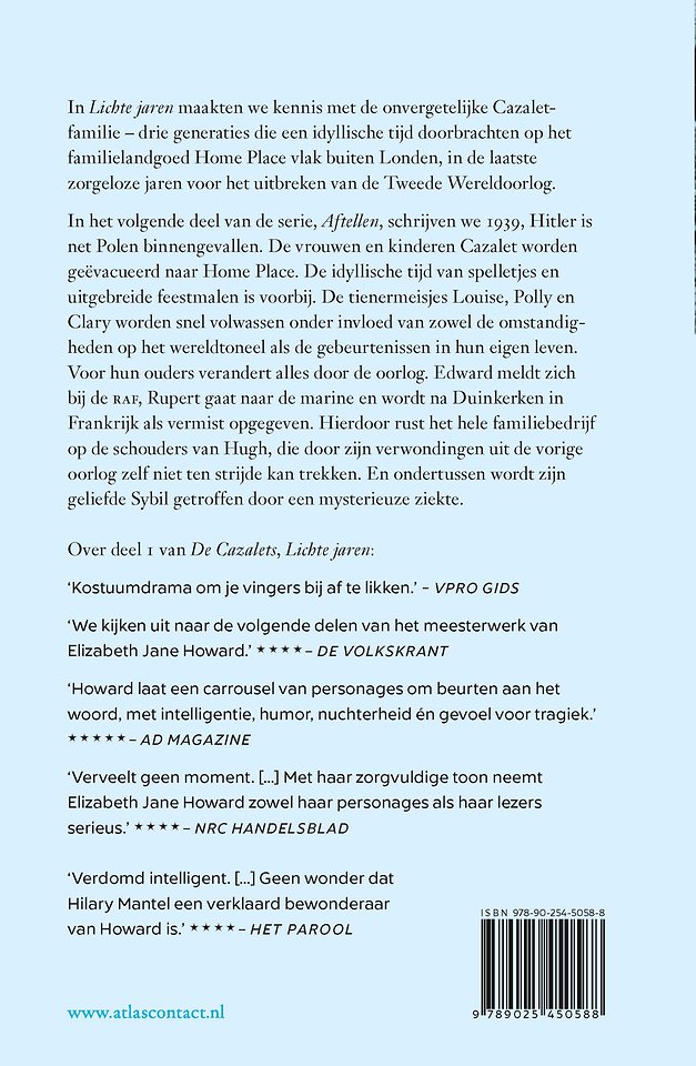 In ‘Aftellen’, het tweede deel in de Cazalet-serie van Jane Howard, schrijven we 1939, Hitler is net Polen binnengevallen. De vrouwen en kinderen Cazalet worden geëvacueerd naar Home Place. De idyllische tijd van spelletjes en uitgebreide feestmalen is voorbij. De tienermeisjes Louise, Polly en Clary worden snel volwassen onder invloed van zowel de omstandigheden op het wereldtoneel als de gebeurtenissen in hun eigen leven. Voor hun ouders verandert alles door de oorlog. Edward meldt zich bij de RAF, Rupert gaat naar de marine en wordt na Duinkerken in Frankrijk als vermist opgegeven. Hierdoor rust het hele familiebedrijf op de schouders van Hugh, die door zijn verwondingen uit de vorige oorlog zelf niet ten strijde kan trekken. En ondertussen wordt zijn geliefde Sybil getroffen door een mysterieuze ziekte.