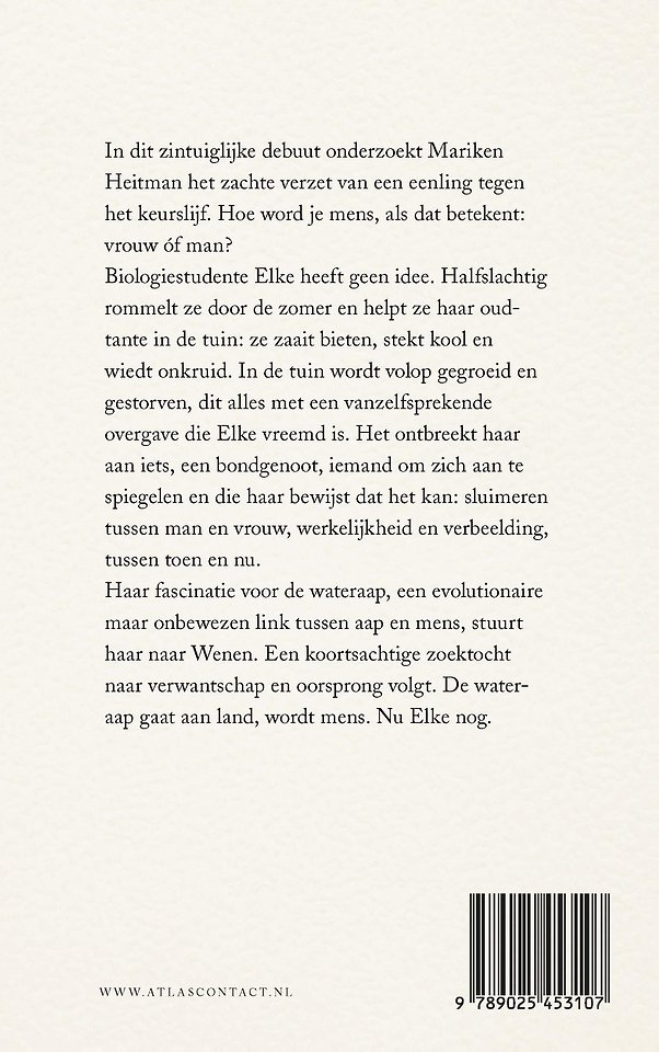 In het zintuiglijke verhaal ‘De wateraap’ onderzoekt Mariken Heitman het zachte verzet van een eenling tegen het keurslijf. Hoe word je mens, als dat betekent: vrouw óf man?