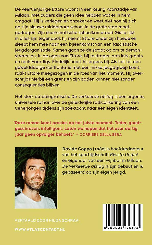 Het sterk autobiografische De verkeerde afslag is een urgente, universele roman over de geleidelijke radicalisering van een tienerjongen tijdens zijn zoektocht naar een eigen identiteit.