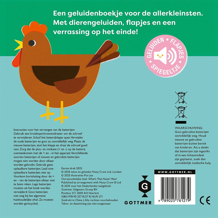 Het leukste geluidenboekje met boerderijdieren voor kindjes vanaf 1 jaar! 'Wat hoor ik daar? - Boe!' is een innovatief en interactief flapjesboek dat perfect is voor nieuwsgierige peuters. In dit kartonboekje met het thema boerderij hoor je vijf verschillende dierengeluiden. Luister samen naar het geluid, raad welk dier zich verstopt en til het flapje op om te zien welk boerderijdier het is! Was het een varken, een schaap, een kip of een koe? Als verrassing aan het einde: een geluidje en een spiegel waarin je kindje zichzelf kan zien!