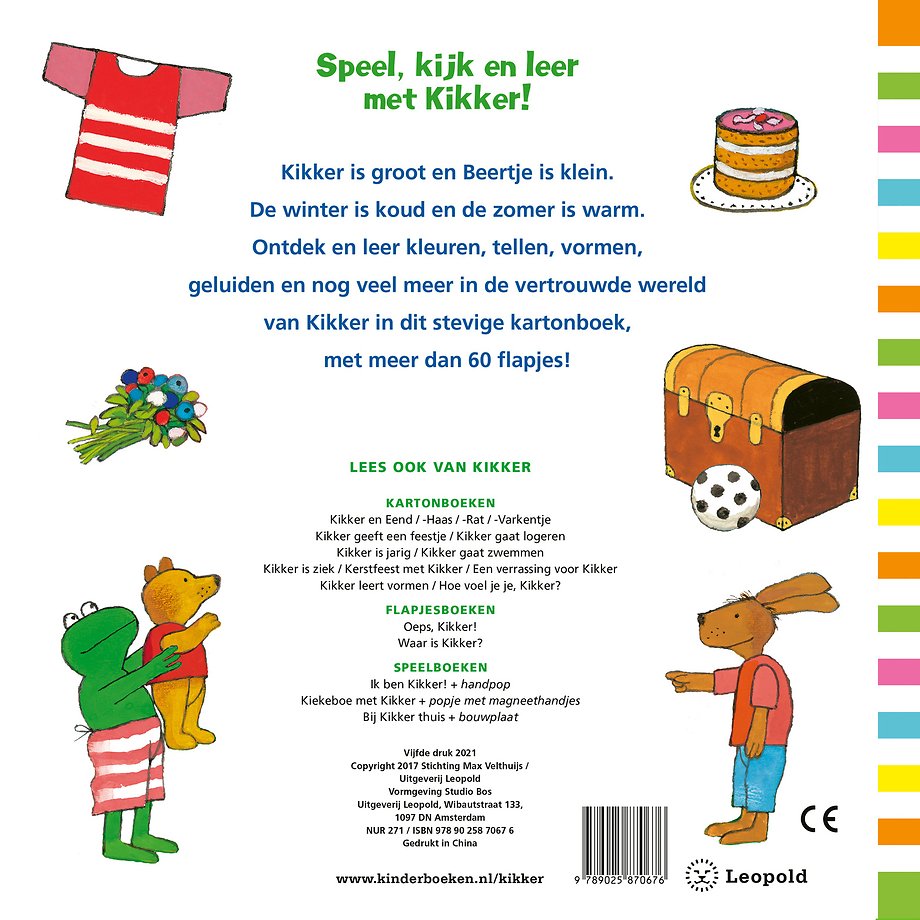 Kikker schildert. En groen is de mooiste kleur van de wereld! Kun jij raden wie er in welk huisje woont? En wat vinden Kikker en zijn vriendjes het lekkerst? Kikker is groot en Beertje is klein. De winter is koud en de zomer is warm. Kikker houdt van spelletjes. Tellen is het allerleukst op een verjaardagspartijtje. Herken jij wat Kikker voelt? Welk dier maakt welk geluid?