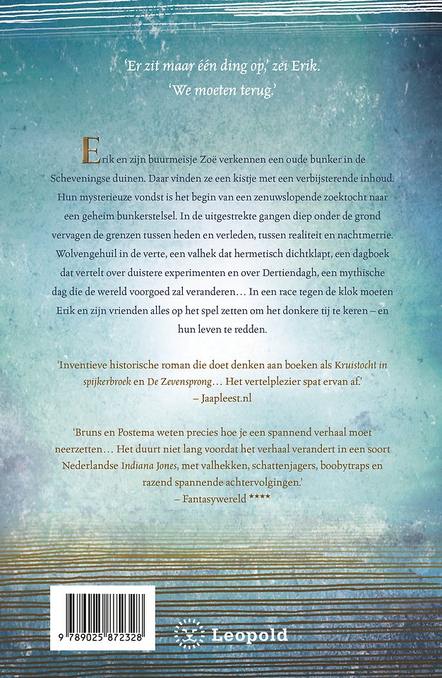 verbijsterende inhoud. Hun mysterieuze vondst is het begin van een zenuwslopende zoektocht naar een geheim bunkerstelsel. In de uitgestrekte gangen diep onder de grond vervagen de grenzen tussen heden en verleden, tussen realiteit en nachtmerrie. Wolvengehuil in de verte, een valhek dat hermetisch dichtklapt, een dagboek dat vertelt over duistere experimenten en over Dertiendagh, een mythische dag die de wereld voorgoed zal veranderen… In een race tegen de klok moeten Erik en zijn vrienden alles op het spel zetten om het donkere tij te keren – en hun leven te redden.