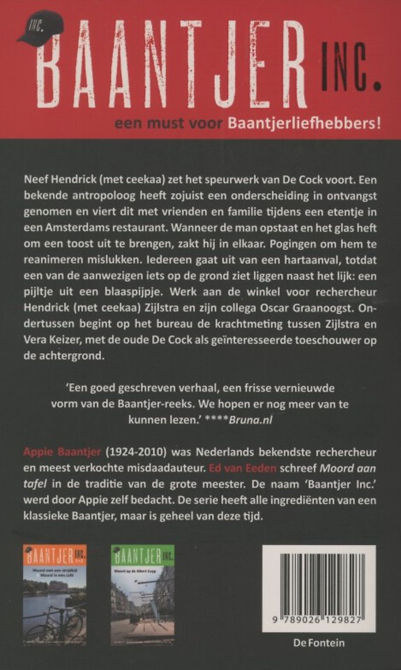 Een bekende antropoloog heeft zojuist een onderscheiding in ontvangst genomen en viert dit met vrienden en familie tijdens een etentje in een Amsterdams restaurant. Wanneer de man opstaat en het glas heft om een toost uit te brengen, zakt hij in elkaar. Pogingen om hem te reanimeren mislukken. Iedereen gaat uit van een hartaanval, totdat een van de aanwezigen iets op de grond ziet liggen naast het lijk: een pijltje uit een blaaspijpje. Werk aan de winkel voor rechercheur Hendrick (met ceekaa) Zijlstra en zijn collega Oscar Graanoogst. Ondertussen begint op het bureau de krachtmeting tussen Zijlstra en Vera Keizer, met de oude De Cock als geïnteresseerde toeschouwer op de achtergrond.