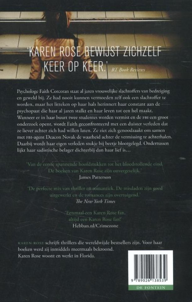 Psychologe Faith Corcoran staat in Cincinnati al jaren vrouwelijke slachtoffers van bedreiging en geweld bij. Ze had nooit kunnen vermoeden zelf ook een slachtoffer te worden, maar het litteken op haar hals herinnert haar constant aan de psychopaat die haar al jaren stalkt en haar leven tot een hel maakt.