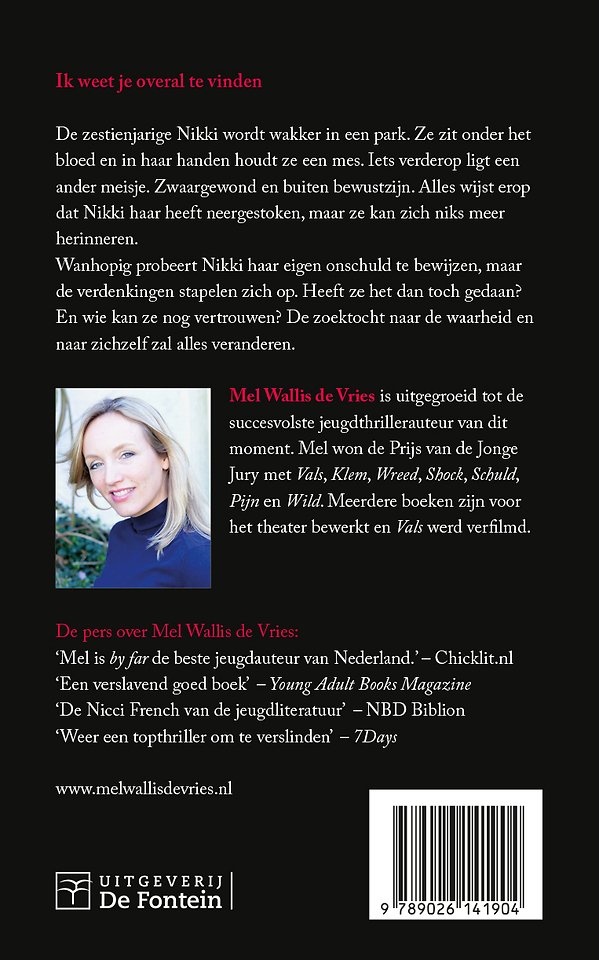 Nikki wordt wakker in een park, gewond en onder het bloed. In haar handen houdt ze een mes, en iets verderop ligt een zwaargewond meisje. Nikki heeft geen idee wie ze is. Maar alles wijst erop dat Nikki haar heeft neergestoken. Alleen weet ze er zelf niks meer van...