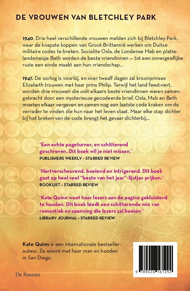 1940. Drie heel verschillende vrouwen melden zich bij Bletchley Park, waar de knapste koppen van Groot-Brittannië werken om Duitse militaire codes te breken. Socialite Osla, de Londense Mab en plattelandsmeisje Beth worden de beste vriendinnen — tot een onvergeeflijke ruzie een einde maakt aan hun vriendschap…