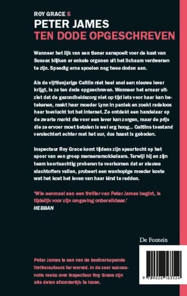 Ten dode opgeschreven is het vijfde boek van Peter James in de verslavende reeks over inspecteur Roy Grace, waarvan de delen onafhankelijk van elkaar te lezen zijn.