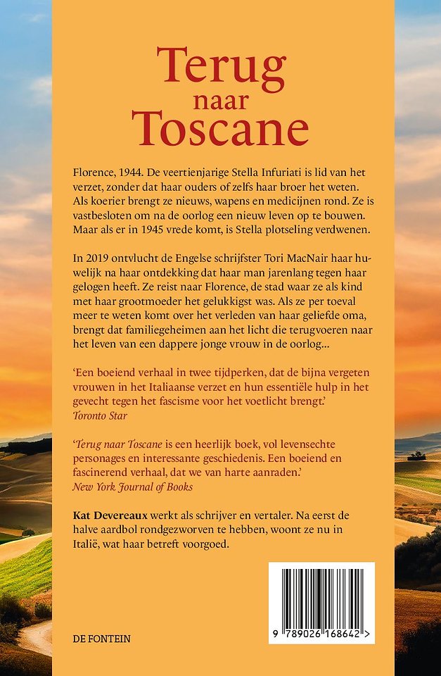 In 2019 ontvlucht de Engelse schrijfster Tori MacNair haar kapotte huwelijk en manipulatieve man, en reist naar Florence, de stad waar ze als kind met haar grootmoeder de gelukkigste tijd kende. Als ze, min of meer per ongeluk, meer te weten komt over het leven van haar geliefde oma, brengt dat familiegeheimen aan het licht die terugvoeren naar het leven van een dappere jonge vrouw in de oorlog...