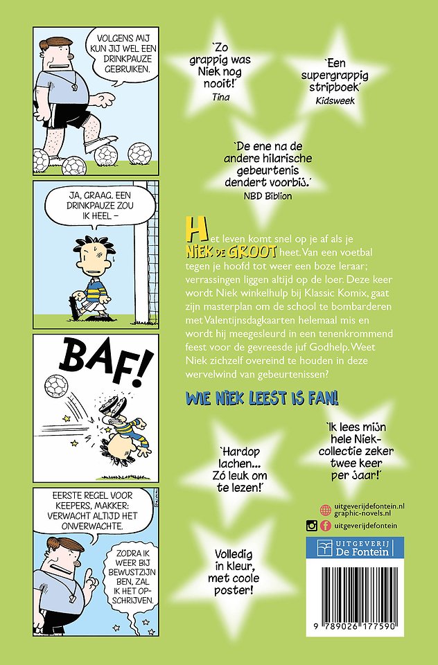 Het leven komt snel op je af als je Niek de Groot heet. Van een voetbal tegen je hoofd tot weer een boze leraar; verrassingen liggen altijd op de loer. Deze keer wordt Niek winkelhulp bij Klassic Komix, gaat zijn masterplan om de school te bombarderen met Valentijnsdagkaarten helemaal mis en wordt hij meegesleurd in een tenenkrommend feest voor de gevreesde juf Godhelp. Weet Niek zichzelf overeind te houden in deze wervelwind van gebeurtenissen?