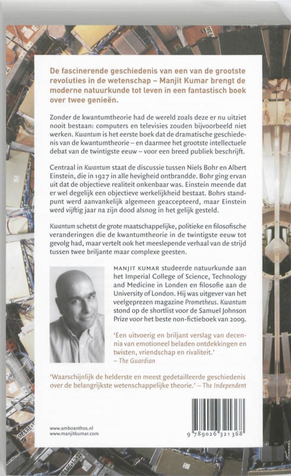 Zonder de kwantumtheorie had de wereld zoals deze er nu uitziet nooit bestaan: computers en televisies zouden bijvoorbeeld niet werken. 'Kwantum' is het eerste boek dat de dramatische geschiedenis van de kwantumtheorie - en daarmee het grootste intellectuele debat van de twintigste eeuw - voor een breed publiek beschrijft.