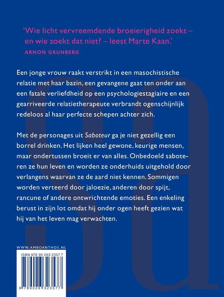 Saboteur is het fictiedebuut van Marte Kaan, freelancejournalist voor onder meer LINDA. en Volkskrant magazine.