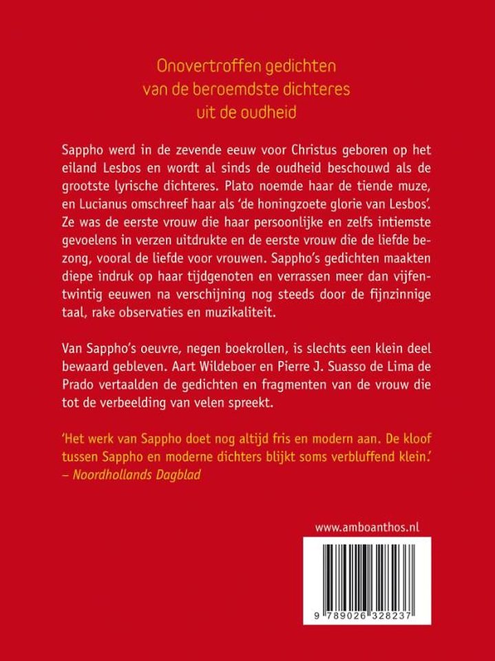 `Het werk van Sappho doet nog altijd fris en modern aan. De kloof tussen Sappho en moderne dichters blijkt soms verbluffend klein. Noordhollands Dagblad