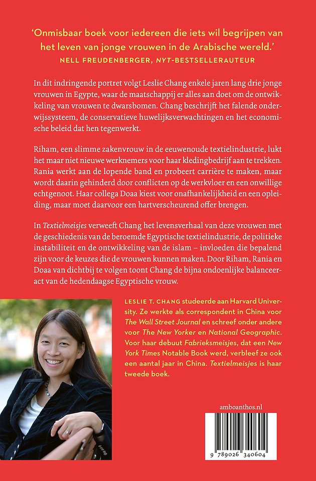 In Textielmeisjes verweeft Chang de levensverhalen van deze vrouwen met de geschiedenis van de beroemde Egyptische textielindustrie, de politieke instabiliteit en de ontwikkeling van de islam – invloeden die bepalend zijn voor de keuzes die zij kunnen maken. Door Riham, Rania en Doaa van dichtbij te volgen toont Chang de bijna ondoenlijke balanceeract van de hedendaagse Egyptische vrouw.