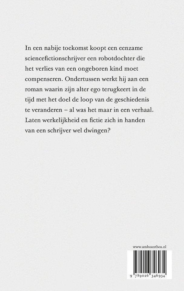 De culminatie van een oeuvre. In een nabije toekomst koopt een eenzame sciencefictionschrijver een robotdochter die het verlies van een ongeboren kind moet goedmaken. Ondertussen werkt hij aan een roman waarin zijn alter ego terugkeert in de tijd met het doel de loop van de geschiedenis zo te veranderen dat zijn ongeboren kind alsnog geboren kan worden – al was het maar in een verhaal. Laten werkelijkheid en fictie zich in handen van een schrijver wel dwingen?