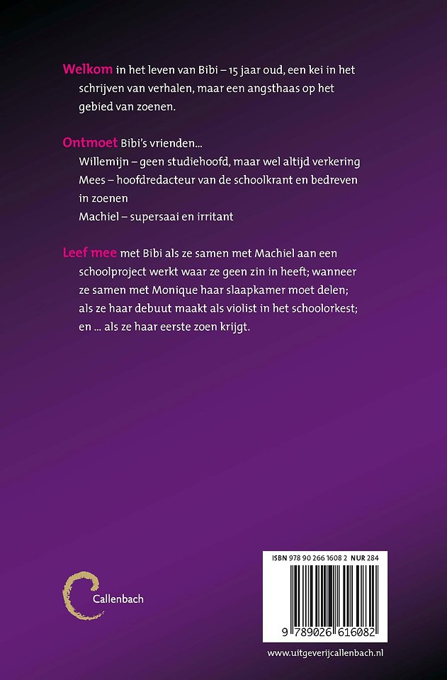 Welkom in het leven van Bibi - 15 jaar oud, een kei in het schrijven van verhalen maar een angsthaas op het gebied van zoenen.