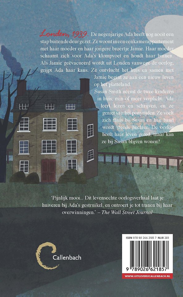 Het aangrijpende verhaal ‘De oorlog die mijn leven redde’, van bestsellerauteur Kimberly Brubaker Bradley, gaat over de negenjarige Ada, die nog nooit een stap buiten de deur heeft gezet. Haar moeder schaamt zich voor Ada’s klompvoet en houdt haar binnen. Maar als haar broertje geëvacueerd wordt uit Londen om aan de oorlog te ontsnappen, grijpt Ada haar kans en glipt weg om hem te volgen. Zo begint er een nieuw avontuur voor Ada, en voor Susan Smith, de vrouw die verplicht wordt de twee kinderen in huis te nemen. Er ontstaat een sterke band tussen Ada en Susan, maar is die sterk genoeg om de oorlog te overleven? Na ‘De oorlog die mijn leven redde’ schreef Kimberly Brubaker Bradley een tweede boek over Ada: ‘De oorlog die ik eindelijk won’.