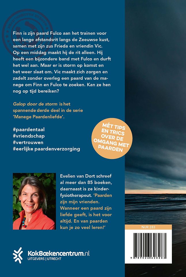 'Galop door de storm' van Evelien van Dort is deel drie in de avontuurlijke paardenserie 'Manege Paardenliefde', voor lezers vanaf 10 jaar.