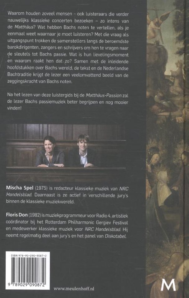 Waarom houden zoveel mensen – ook luisteraars die verder nauwelijks klassieke concerten bezoeken – zo intens van de Matthäus? Wat hebben Bachs noten te vertellen, als je eenmaal weet waarnaar je moet luisteren? Met die vraag als uitgangspunt trokken de samenstellers langs de beroemdste barokdirigenten, zangers en schrijvers om hen te vragen naar de sleutels tot Bachs passie. Wat is hun lievelingsmoment, en waarom raakt hen dat zo? Samen met de inleidende hoofdstukken over Bachs wereld, de tekst en de Nederlandse Bachtraditie krijgt de lezer een veelomvattend beeld van de zeggingskracht van Bachs muziek.