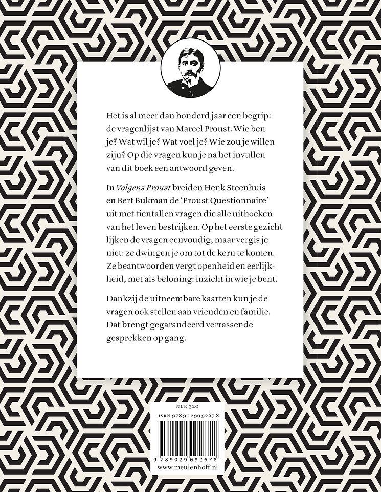 Het is al meer dan honderd jaar een begrip:de vragenlijst van Marcel Proust. Wie benje? Wat wil je? Wat voel je? Wie zou je willen zijn? Op die vragen kun je na het invullen van dit boek een antwoord geven. In Volgens Proust breiden Henk Steenhuis en Bert Bukman de ‘Proust Questionnaire’ uit met tientallen vragen die alle uithoeken van het leven bestrijken. Op het eerste gezicht lijken de vragen eenvoudig, maar vergis je niet: ze dwingen je om tot de kern te komen. Ze beantwoorden vergt openheid en eerlijkheid, met als beloning: inzicht in wie je bent.