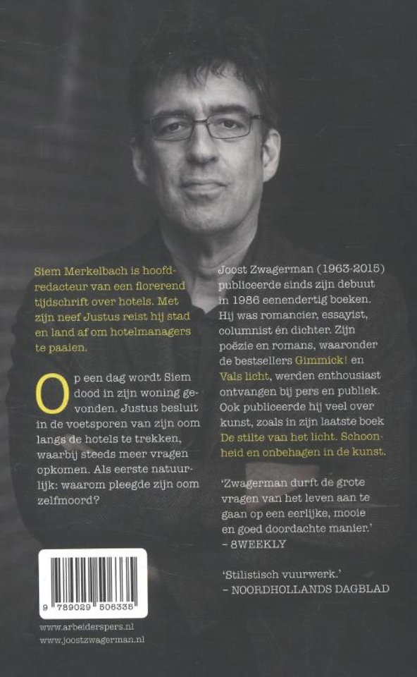 Siem Merkelbach is hoofdredacteur van een florerend tijdschrift over hotels. Met zijn neef Justus reist hij stad en land af om hotelmanagers te paaien. Op een dag wordt Siem dood in zijn woning gevonden. Justus besluit in de voetsporen van zijn oom langs de hotels te trekken, waarbij steeds meer vragen opkomen. Als eerste natuurlijk: waarom pleegde zijn oom zelfmoord?