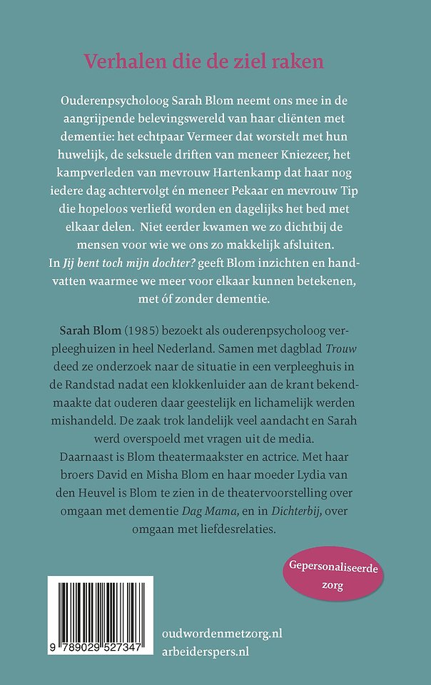 In Jij bent toch mijn dochter? geeft Blom inzichten en handvatten waarmee we meer voor elkaar kunnen betekenen, met óf zonder dementie.