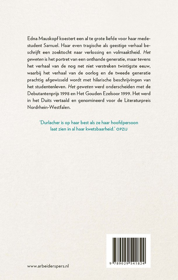 Het geweten vertelt de geschiedenis van Edna Mauskopf die een al te grote liefde koestert voor haar medestudent Samuel. Haar even tragische als geestige verhaal is een zoektocht naar verlossing en volmaaktheid. Het geweten is het portret van een generatie, maar ook het verhaal van de nog net niet verstreken twintigste eeuw, waarbij de geschiedenis van de oorlog en de tweede generatie prachtig afgewisseld wordt met hilarische beschrijvingen van het studentenleven.