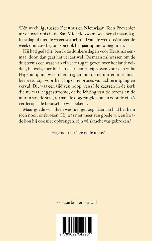 ‘Eén week ligt tussen Kerstmis en Nieuwjaar. Toen Provenier uit de nachtmis in de San Michele kwam, was het al maandag, feestdag of niet de wreedste ochtend van de week. Wanneer de week opnieuw begon, zou ook het jaar opnieuw beginnen.