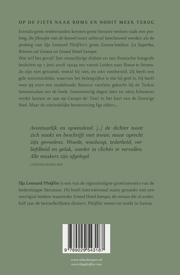 Een zwaarlijvige dichter en een Russische fotografe fietsen in juni 2008 vanuit Leiden naar Rome. Ze zijn niet getraind, vooral hij niet, en niet voorbereid. Eenenveertig dagen later en 2600 kilometer verder komen ze aan op Campo de’ Fiori in het hart van de Eeuwige Stad. Maar de uiteindelijke bestemming ligt elders...