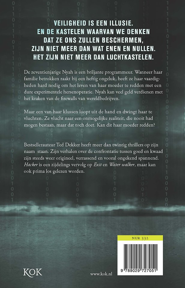 Ted Dekker schrijft thrillers die de lezer meeslepen in een raadselachtige andere wereld. 'Hacker' is een zijdelings vervolg op 'Exit' en 'Water walker', maar kan ook prima los gelezen worden.