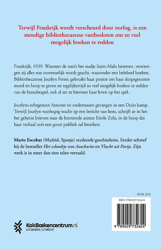 ‘De bibliotheek van Saint-Malo’ speelt zich af in het Franse kustplaatsje Saint-Malo tijdens de Tweede Wereldoorlog. Wanneer de nazi’s het stadje bezetten vernietigen zij alles wat onwenselijk wordt geacht, waaronder een heleboel boeken. Jocelyn Ferrec, een dappere bibliothecaresse, gebruikt haar positie om haar dorpsgenoten moed en hoop te geven en tegelijkertijd zo veel mogelijk boeken te redden van de brandstapel. Haar man Antoine zit ondertussen gevangen in een Duits kamp. Terwijl Jocelyn wanhopig wacht op een bericht van hem, schrijft ze brieven naar de beroemde auteur Emile Zola, in de hoop dat haar verhaal ooit een groot publiek zal bereiken.