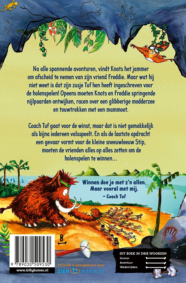 Na alle spannende avonturen, vindt Knots het jammer om afscheid te nemen van zijn vriend Freddie. Maar wat hij niet weet is dat zijn zusje Tuf hen heeft ingeschreven voor de holenspelen! Opeens moeten Knots en Freddie springende nijlpaarden ontwijken, racen over een glibberige modderzee en touwtrekken met een mammoet.