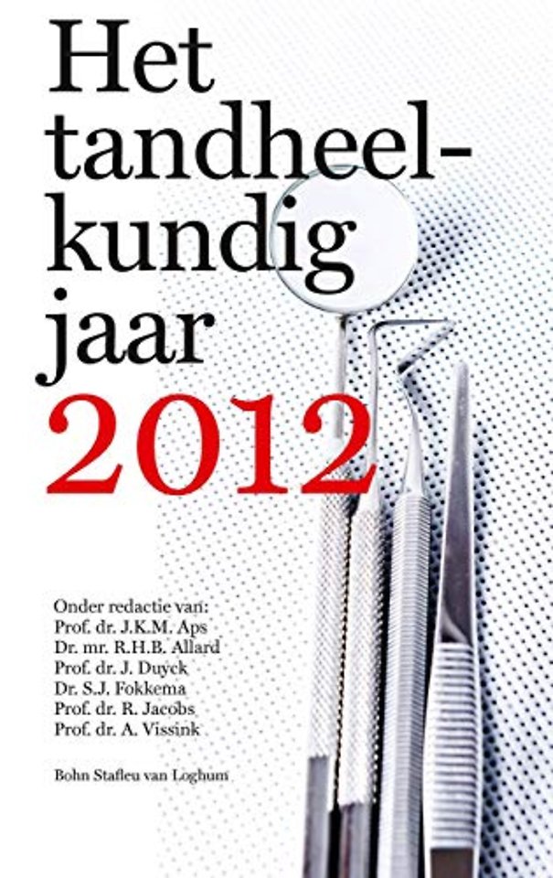Het tandheelkundig jaar 2012 biedt een overzicht van de meest recente ontwikkelingen in de tandheelkunde. Een breed scala aan onderwerpen komt aan bod, beschreven door een keur van gezaghebbende Vlaamse en Nederlandse auteurs. Een greep uit de onderwerpen: - Pre-implantaire chirurgie - Implantaten: een psychosociale benadering - Mondklachten en gebitsproblemen bij systemische lupus erythematosus (SLE) - Laserbleken - Antostolling en tandheelkundige ingrepen - Autotransplantaties: stand van zaken - Kaasmolaren/molar incisor hypomineralisation:we doen we ermee?