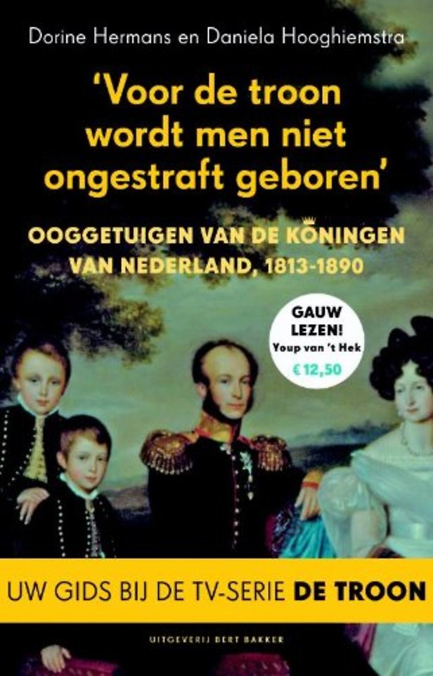 Lees zelf de originele getuigenissen van en over de drie koningen. Dorine Hermans en Daniela Hooghiemstra diepten voor deze bundel uit archieven, tot in Paleis Noordeinde aan toe, intrigerende, geestige en ontroerende ooggetuigenverslagen op. De beschrijvingen van onder anderen diplomaten, hofartsen en ministers, én die van de koningen en hun familieleden zelf, waren destijds meestal niet voor publicatie bestemd. Zij geven een menselijk beeld van de drie mannen op de troon. De historische inleiding die aan de ooggetuigenverslagen in Voor de troon wordt men niet ongestraft geboren voorafgaat is bovendien een handige gids bij de avro-serie De Troon.