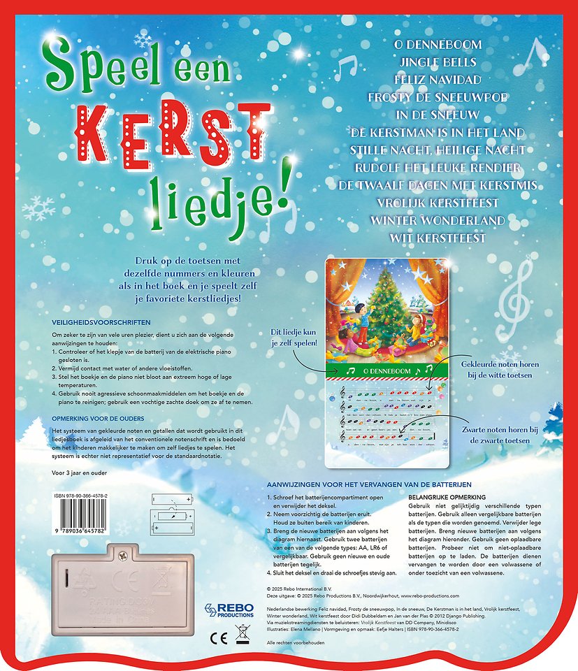 Druk op de toetsen met dezelfde nummers en kleuren als in het boek en je speelt zelf je favoriete kerstliedjes!