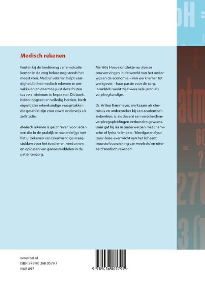 Medisch rekenen is geschreven voor iedereen die in de praktijk te maken krijgt met het uitrekenen van rekenkundige vraagstukken voor het toedienen, verdunnen en oplossen van geneesmiddelen in de patiëntenzorg.