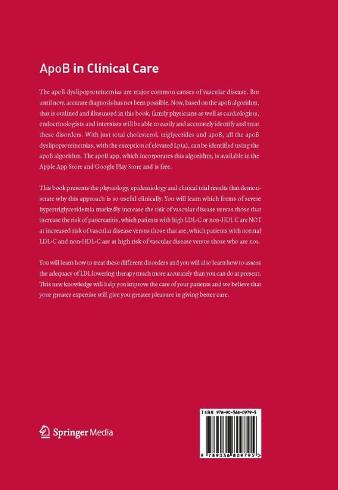Now, based on the apoB algorithm, that is outlined and illustrated in this book, family physicians as well as cardiologists, endocrinologists and internists will be able to easily and accurately identify and treat these disorders.