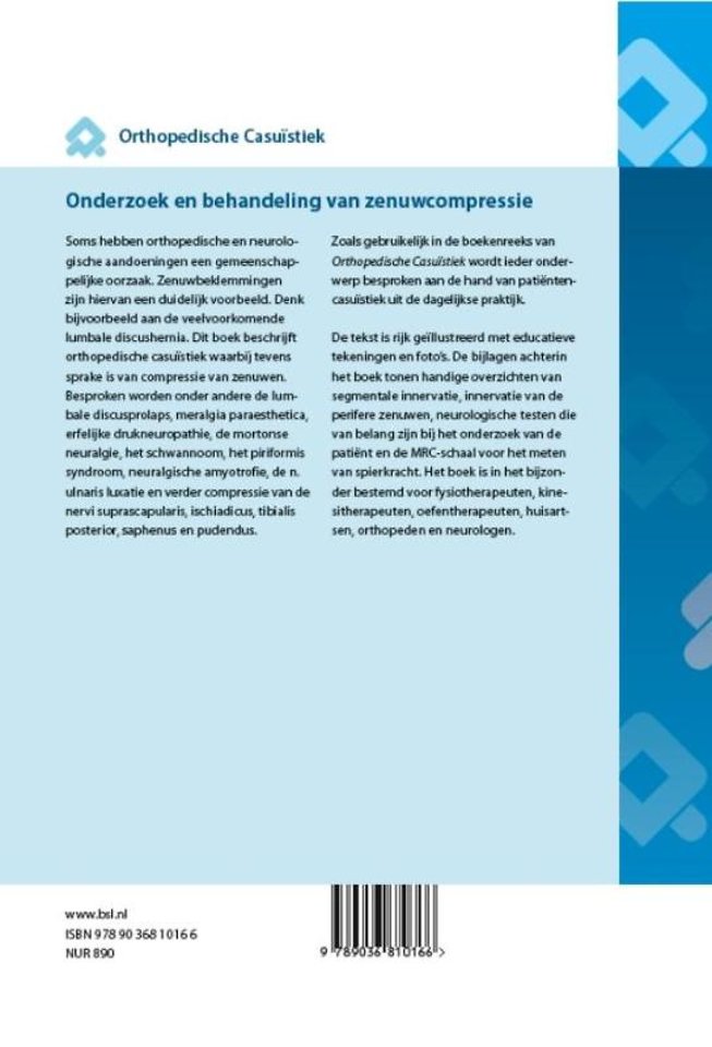 Dit boek geeft aan de hand van een groot aantal casuïstiekbeschrijvingen een concreet beeld van de klachten, symptomen, diagnostiek en therapeutische mogelijkheden bij patiënten met zenuwcompressie. Relevante achtergrondinformatie wordt uitgebreid besproken en is gebaseerd op actuele wetenschappelijke inzichten. De tekst is rijk geïllustreerd met educatieve tekeningen en foto's. Het boek is in het bijzonder bestemd voor fysiotherapeuten, kinesitherapeuten, oefentherapeuten, huisartsen , sportartsen en orthopeden.