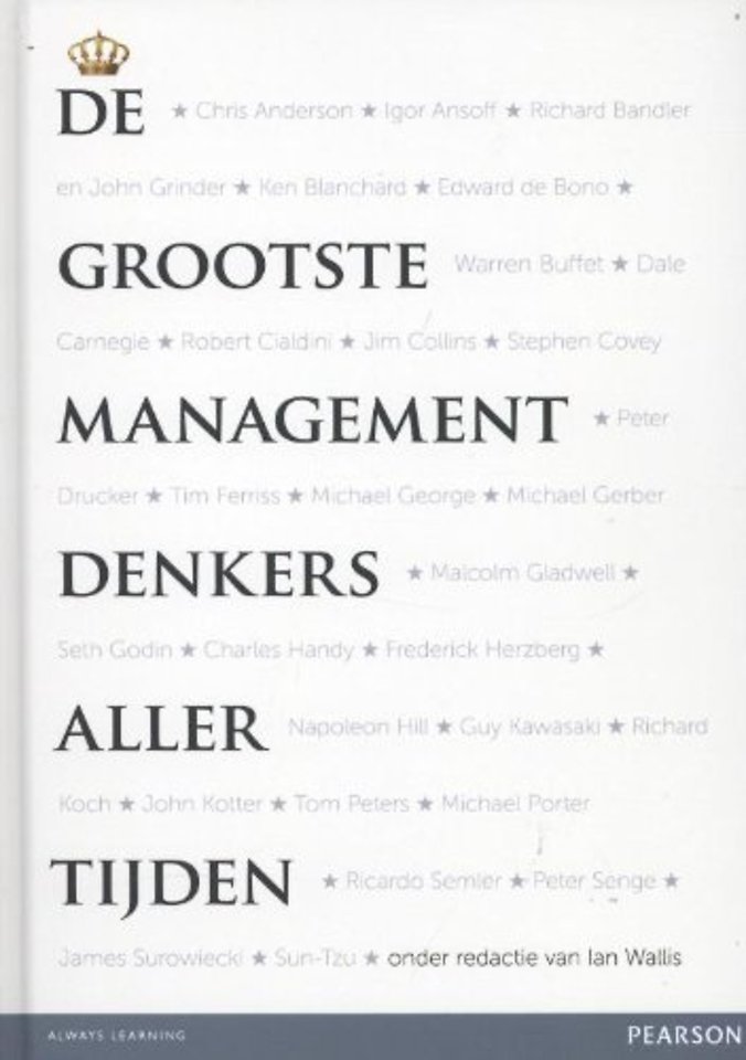 In dit boek vindt u de 28 belangrijkste denkers op het gebied van management en leidinggeven bij elkaar. In duidelijke taal wordt hun theorie samengevat en de toepassing ervan in de praktijk van het bedrijfsleven belicht. Raakvlakken met andere denkers en de waarde van de theorie voor de hedendaagse situatie komen ook aan de orde.
