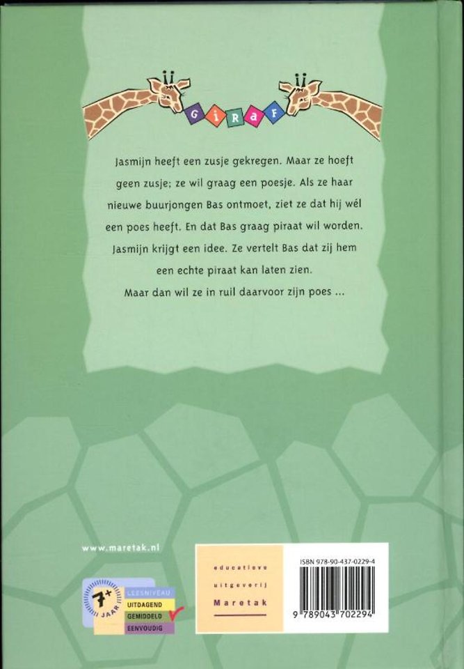 Jasmijn heeft een zusje gekregen. Maar ze hoeft geen zusje; ze wil graag een poesje. Als ze haar nieuwe buurjongen Bas ontmoet, ziet ze dat hij wél een poes heeft. En dat Bas graag piraat wil worden. Jasmijn krijgt een idee. Ze vertelt Bas dat zij hem een echte piraat kan laten zien. Maar dan wil ze in ruil daarvoor zijn poes ...