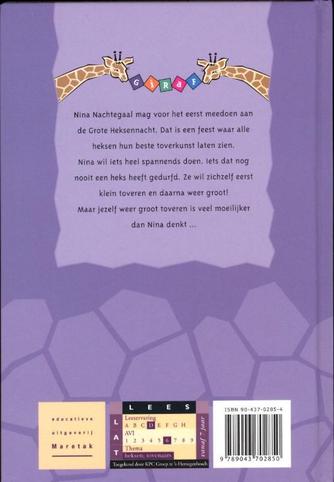 Nina Nachtegaal mag voor het eerst meedoen aan de Grote Heksennacht. Dat is een feest waar alle heksen hun beste toverkunst laten zien. Nina wil iets heel spannends doen. Iets dat nog nooit een heks heeft gedurfd. Ze wil zichzelf eerst klein toveren en daarna weer groot! Maar jezelf weer groot toveren is veel moeilijker dan Nina denkt ...