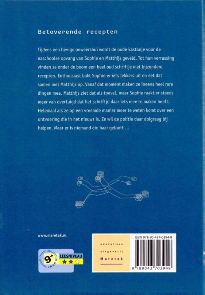 Tijdens een hevige onweersbui wordt de oude kastanje voor de naschoolse opvang van Sophie en Matthijs geveld. Tot hun verrassing vinden ze onder de boom een heel oud schriftje met bijzondere recepten. Enthousiast bakt Sophie er iets lekkers uit en eet dat samen met Matthijs op.