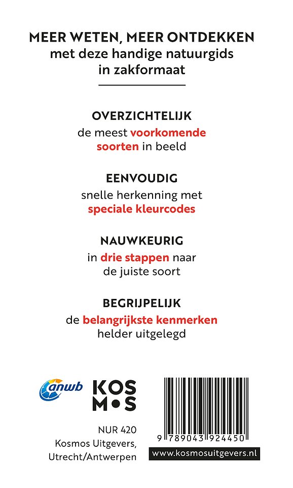 De ‘ANWB Basis natuurgids – Paddenstoelen’ staat boordevol informatie over eetbare en giftige paddenstoelen. Met gedetailleerde beschrijvingen kunnen ruim 120 bekende soorten eenvoudig worden herkend. Door de natuurgetrouwe tekeningen en prachtige foto’s zijn in één oogopslag alle opvallendste kenmerken terug te vinden. De indeling op kleurcodes maakt het zoeken supereenvoudig. Deze zakgids heeft een handig pocketformaat en is daardoor makkelijk mee te nemen tijdens elke natuurwandeling. Een beknopte gids met complete inhoud, ideaal voor een snelle en eenvoudige soortherkenning!