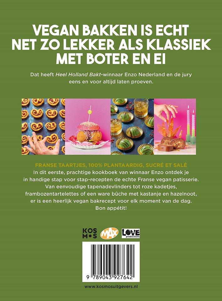 Vegan bakken is echt net zo lekker als klassiek met boter en ei, en in Heel Holland Bakt Vegan laat niemand minder dan Enzo Pérès-Labourdette dat zien. Enzo won Heel Holland Bakt en wist zelfs Meesterbakker Robèrt van Beckhoven te overtuigen. Ontdek stap voor stap de echte Franse vegan patisserie, van eenvoudig tot iets uitdagender. Van madeleines, meringue en palmiers, en broodjes vegan bitterballen. Voor elk moment van de dag, zowel zoet & hartig. En bien sûr, met volop hits uit de show.