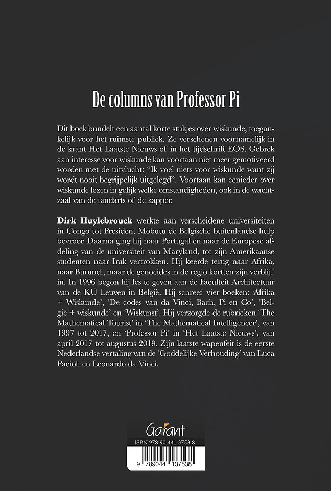 Dit boek bundelt een aantal korte stukjes over wiskunde, toegankelijk voor het ruimste publiek. Ze verschenen voornamelijk in de krant Het Laatste Nieuws of in het tijdschrift EOS. Gebrek aan interesse voor wiskunde kan voortaan niet meer gemotiveerd worden met de uitvlucht: “Ik voel niets voor wiskunde want zij wordt nooit begrijpelijk uitgelegd”. Voortaan kan eenieder over wiskunde lezen in gelijk welke omstandigheden, ook in de wachtzaal van de tandarts of de kapper.